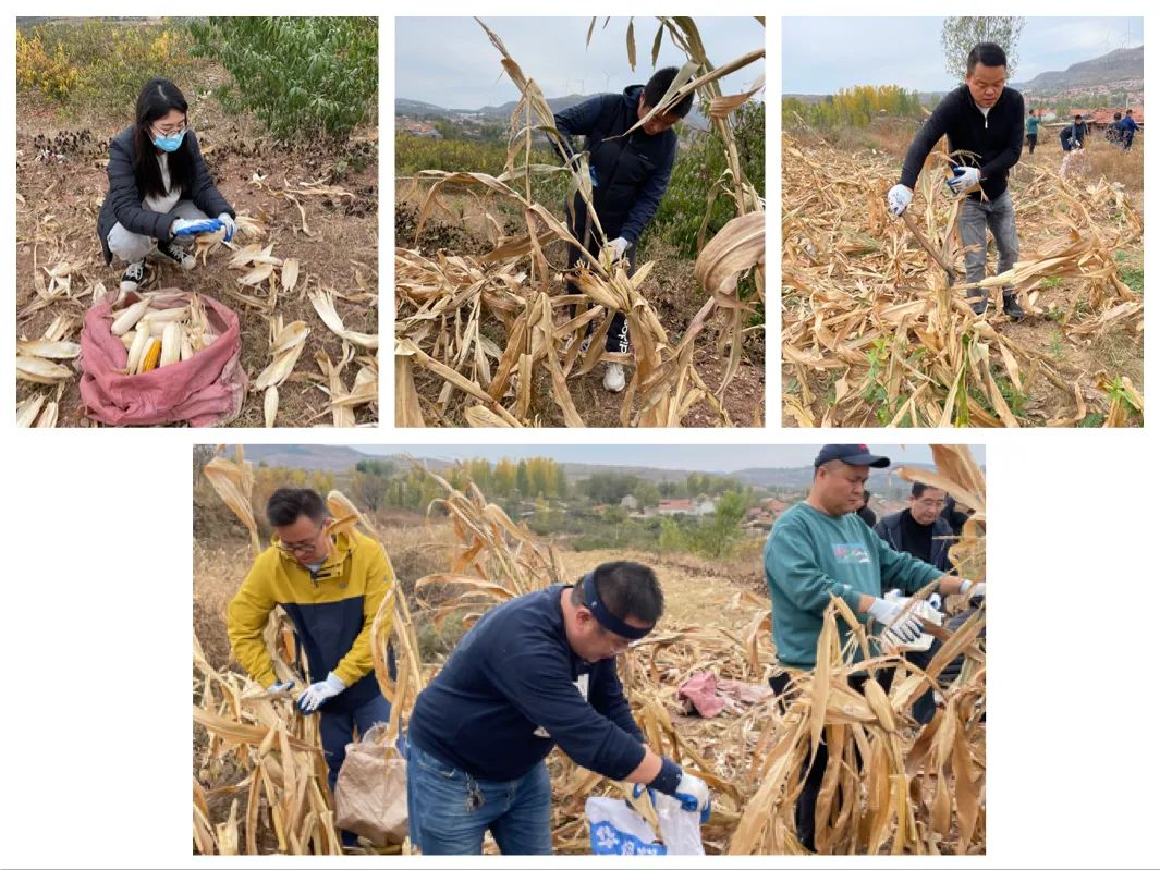 玉米地內(nèi),大家擼起袖子默契協(xié)作,有的采摘玉米,有的負(fù)責(zé)運(yùn)送,有的負(fù)責(zé)砍玉米桿……處處都是大家忙碌的身影。經(jīng)過大半天的齊心協(xié)力,大家終于把玉米全部收完。